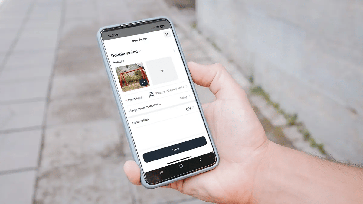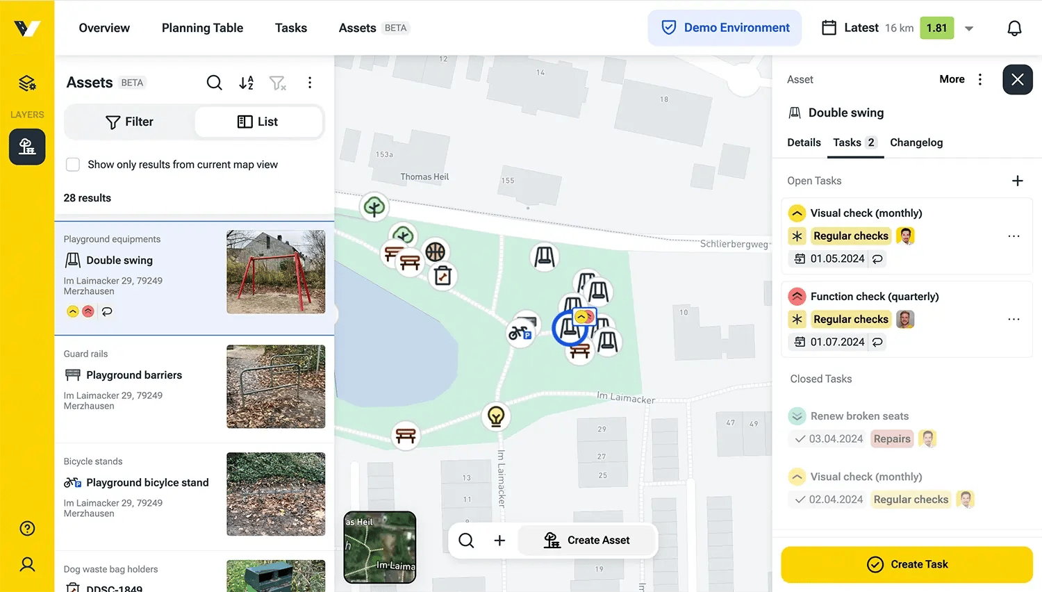 If the need for repair is identified during an inspection, a maintenance work order can be created directly for the asset concerned, e.g. a dilapidated swing.